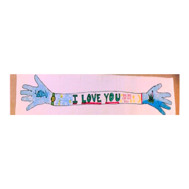 We trace the hands and arms of a resident on soft fleece, which can then be decorated. When completed, it will wrap cozily around the person for whom it's made.